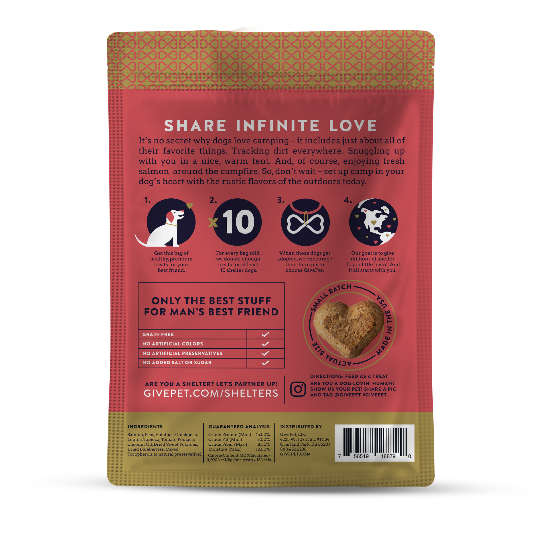 It’s no secret why dogs love camping—it’s full of their favorite things. Tracking dirt, snuggling in a warm tent, and enjoying fresh salmon by the campfire. These crunchy baked biscuits bring the rustic flavors of the outdoors right to your pup’s bowl. Made with salmon as the first ingredient and packed with wholesome nutrition, they’re perfect for everyday treating or gifting.